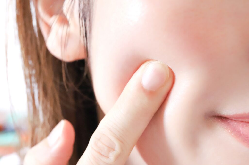 ニキビを触る。