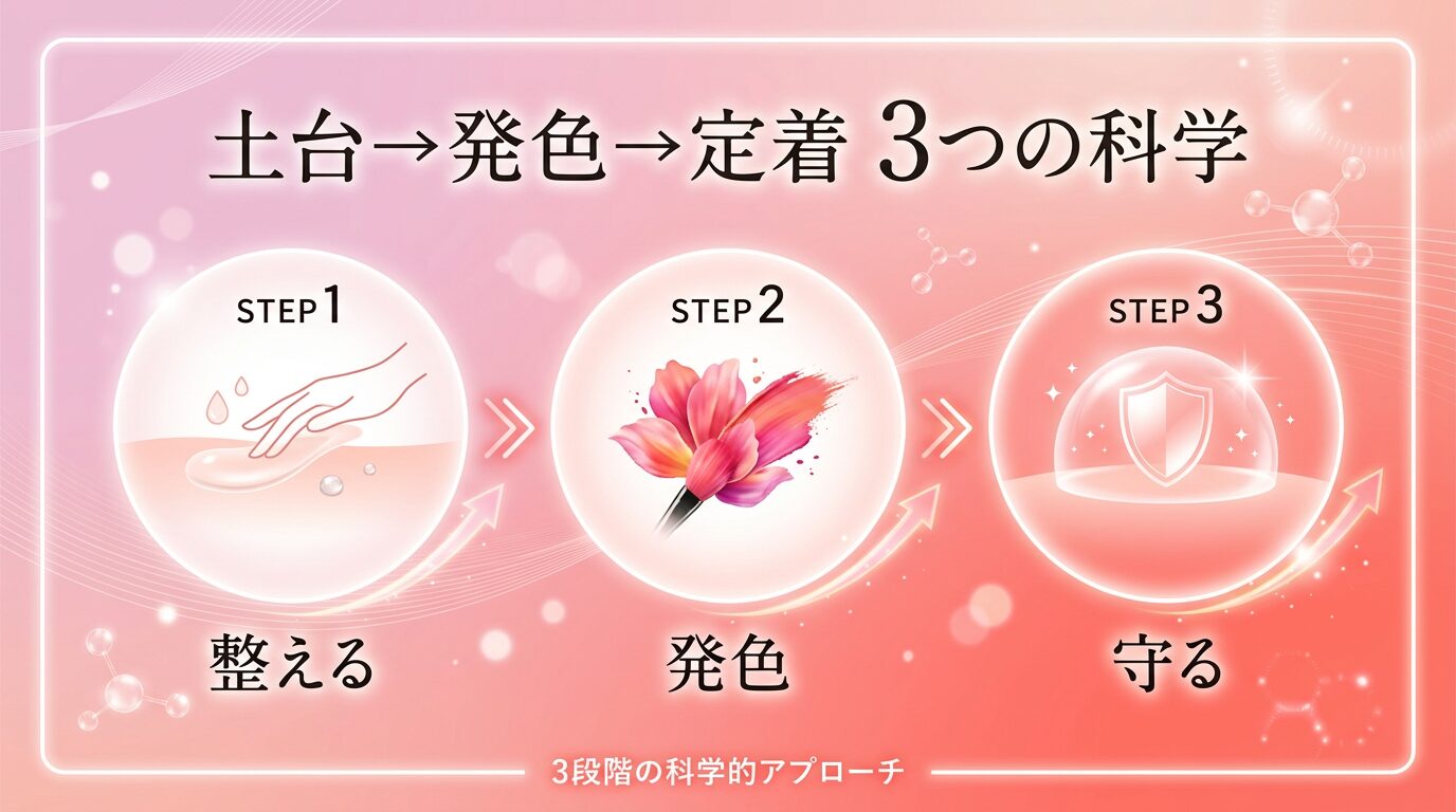 - STEP1で土台を整え、STEP2で発色、STEP3で定着・保護の3ステップ構成