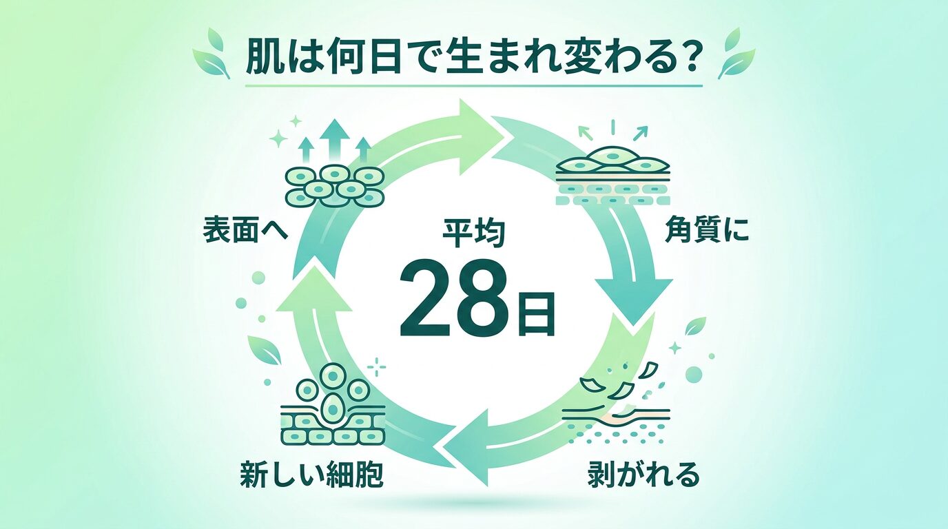 - ターンオーバーは肌が生まれ変わるサイクル。健康な肌で約28日周期