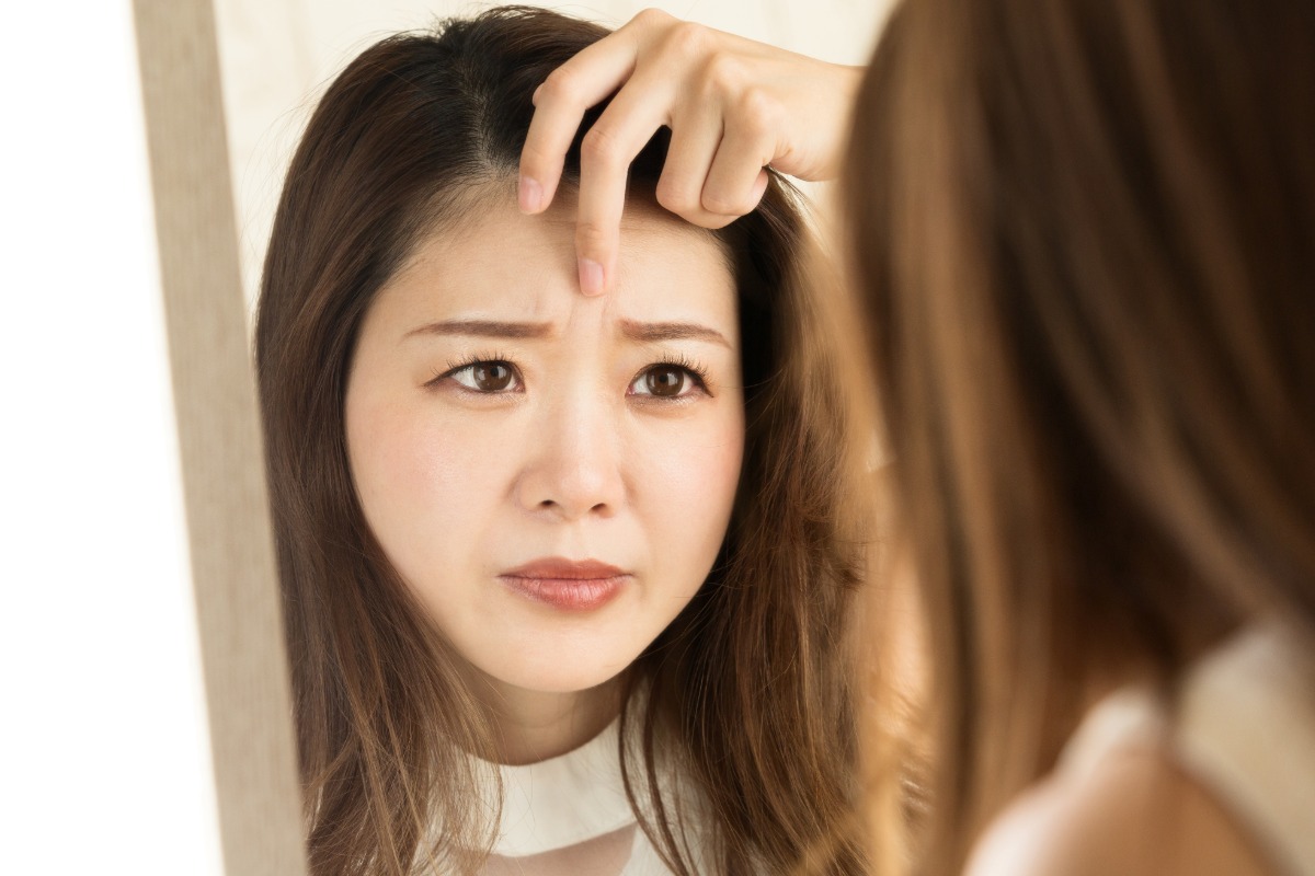 典型的なのが、Tゾーン(額・鼻)はオイリーで、Uゾーン(頬・顎)は乾燥している、というパターン。